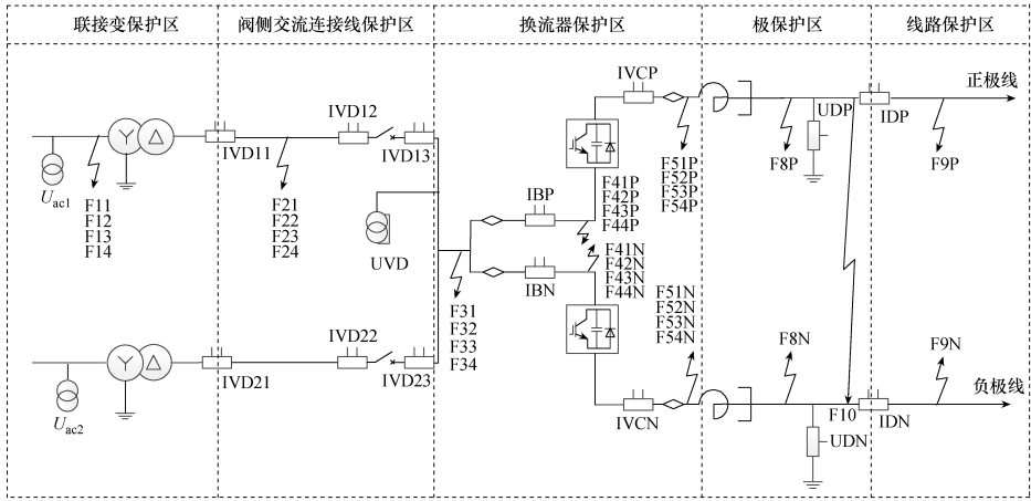 - 联接变保护区、交流连接线区、换流器区、极区、双极区、直流线路区。