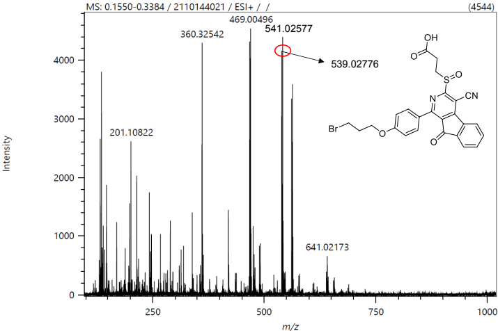 - 高分辨质谱:确认分子量(实测539.0278,理论539.0271)